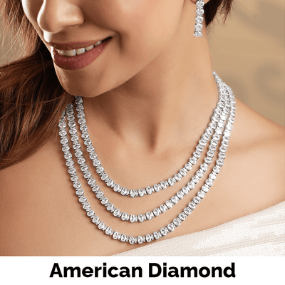 Rubans Rose Gold Plated White Beads American Diamond Necklace Set.