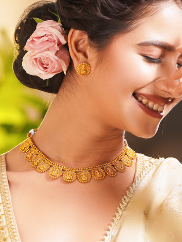 Rubans 18K Gold Plated Brass Kundan Cubic Zirconia Multilayer Necklace Set