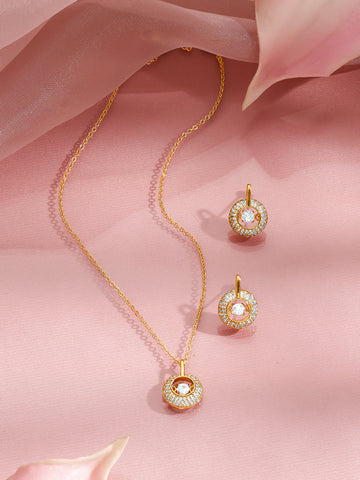 Rubans 18K Gold Plated Brass Gold Crystal AD Studded Pendant Necklace Set