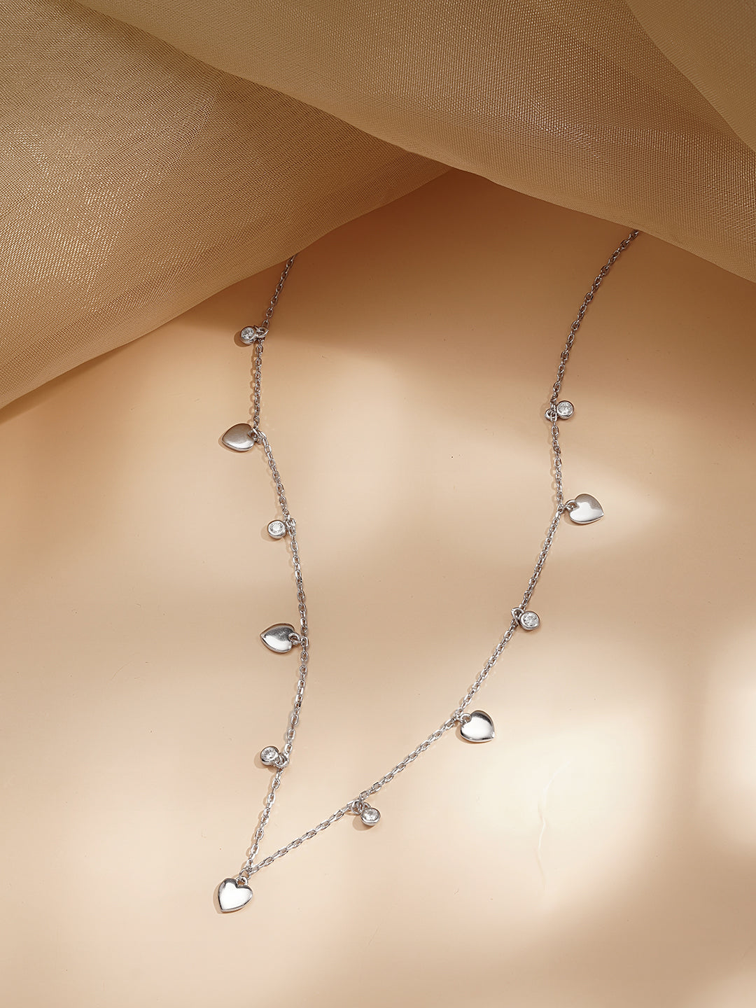 A sweet 925 Silver necklace with crystal mini heart charm, designed to express love with soft sparkle. Styling Tip: Romantic styling