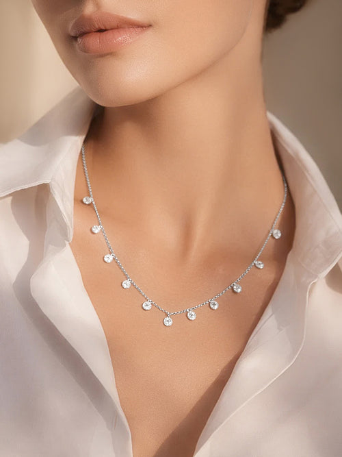 This 925 Silver crystal necklace catches light beautifully, making your neckline glow with every movement. Styling Tip: Cocktail night look