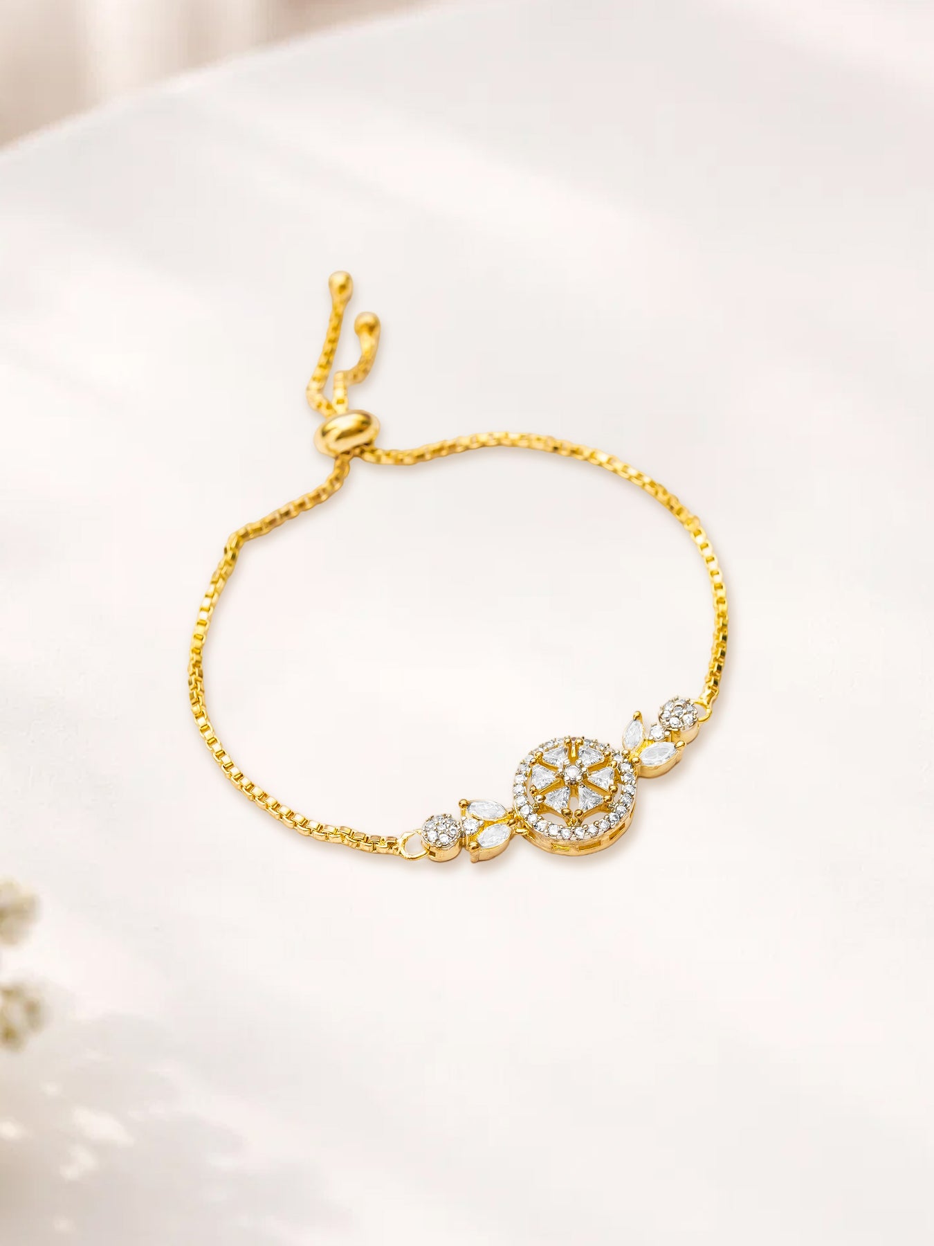 Paired with this beautiful bracelet with diamond-studded delicate floral motifs, it is the perfect gift to complement your shine. Because your heart deserves it all.