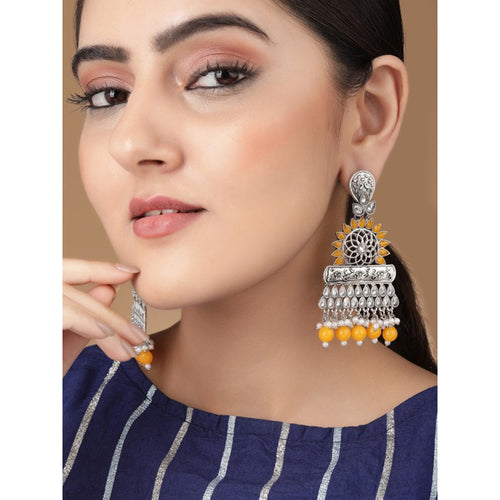 Share on WhatsappRubans Silver-Toned & Orange Stone Studded & Beaded Oxidized Drop Earrings