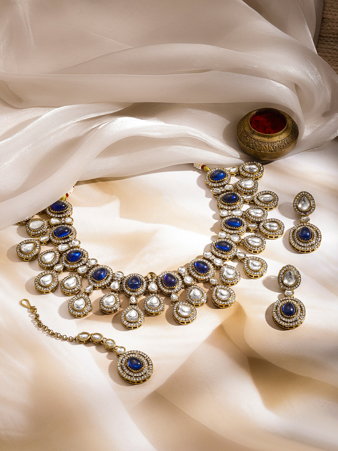 Blue Sapphire Glow Kundan Statement Necklace Set