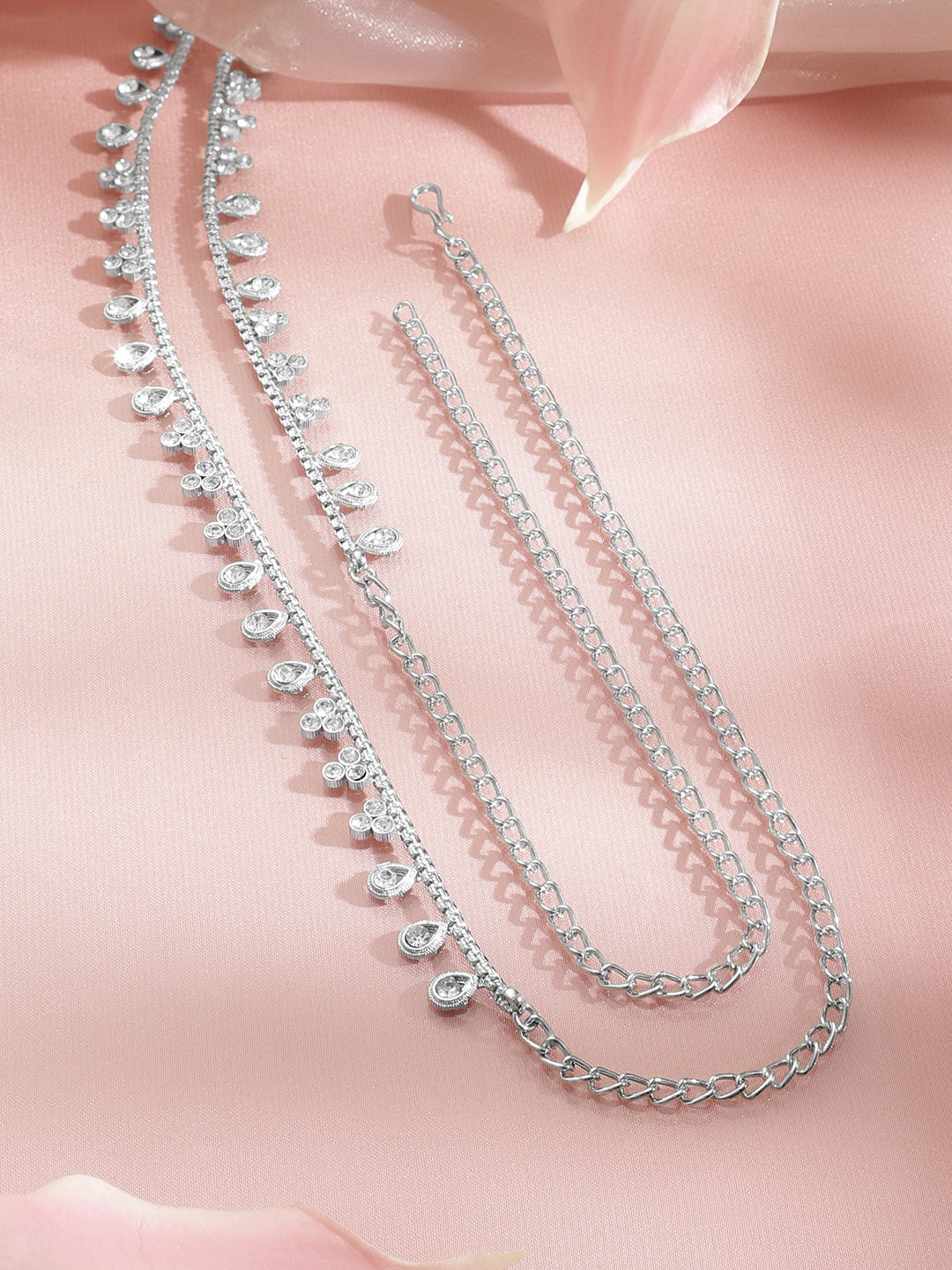Rhodium plated Brass American Diamond waist chain designed for a bright silver shine and lightweight elegance, perfect for bridal, festive and special occasion styling.