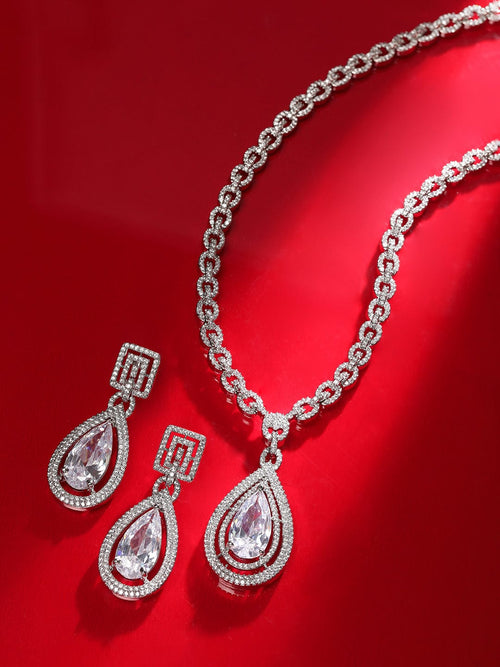 American Diamond Zirconia Teardrop Necklace Set