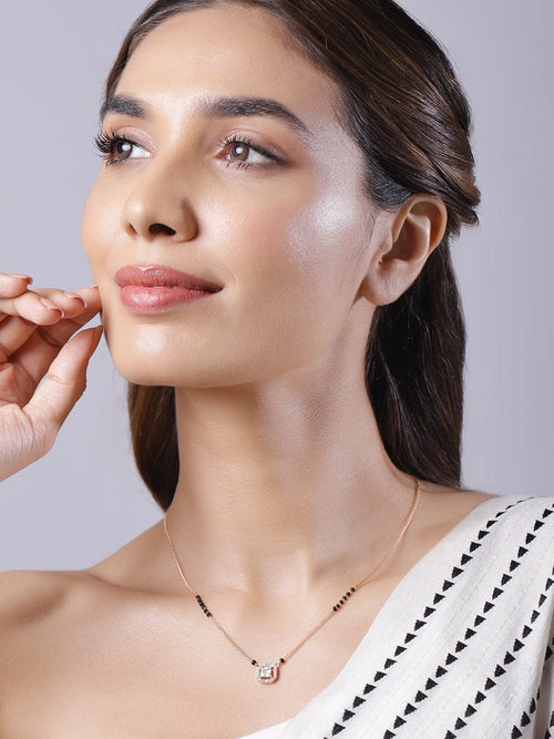 Women Rose Gold Plated CZ Stone Studded Black Beads Mangalsutra Mangalsutra
