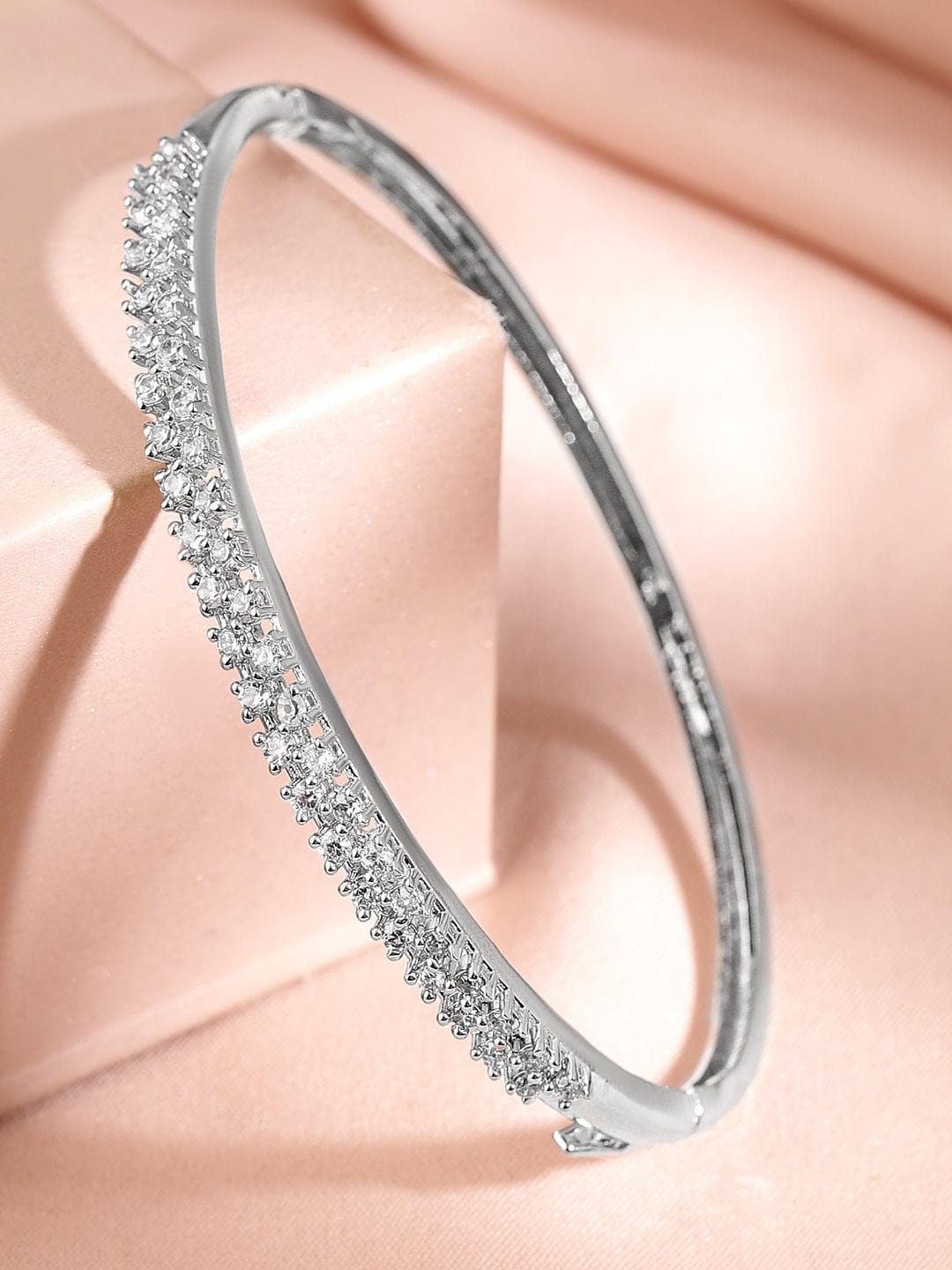 Rubans Rhodium Plated Cubic Zirconia Bangle Style Bracelet