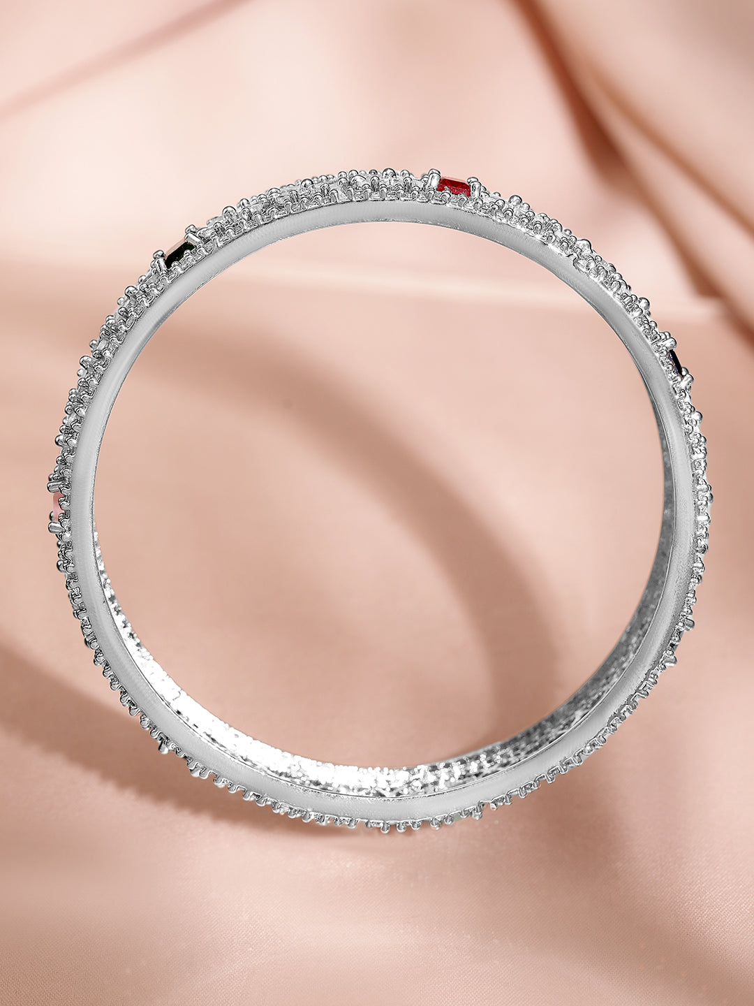 Bangle :Add vibrance to your jewelry collection with these rhodium-plated bangles featuring multicolor cubic zirconia stones, offering a chic and premium aesthetic.