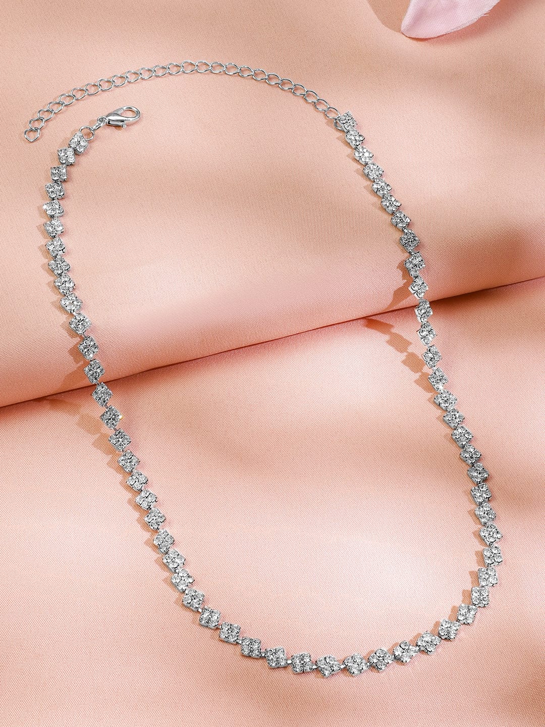 Rubans Rhodium-Plated White Cubic Zirconia Studded Classic Tennis Necklace Chain & Necklace