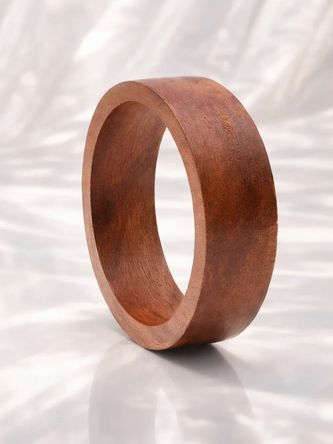 Crafted in smooth brown wooden finish this bold bangle style bracelet features a clean solid silhouette offering effortless styling for contemporary daily and festive looks.