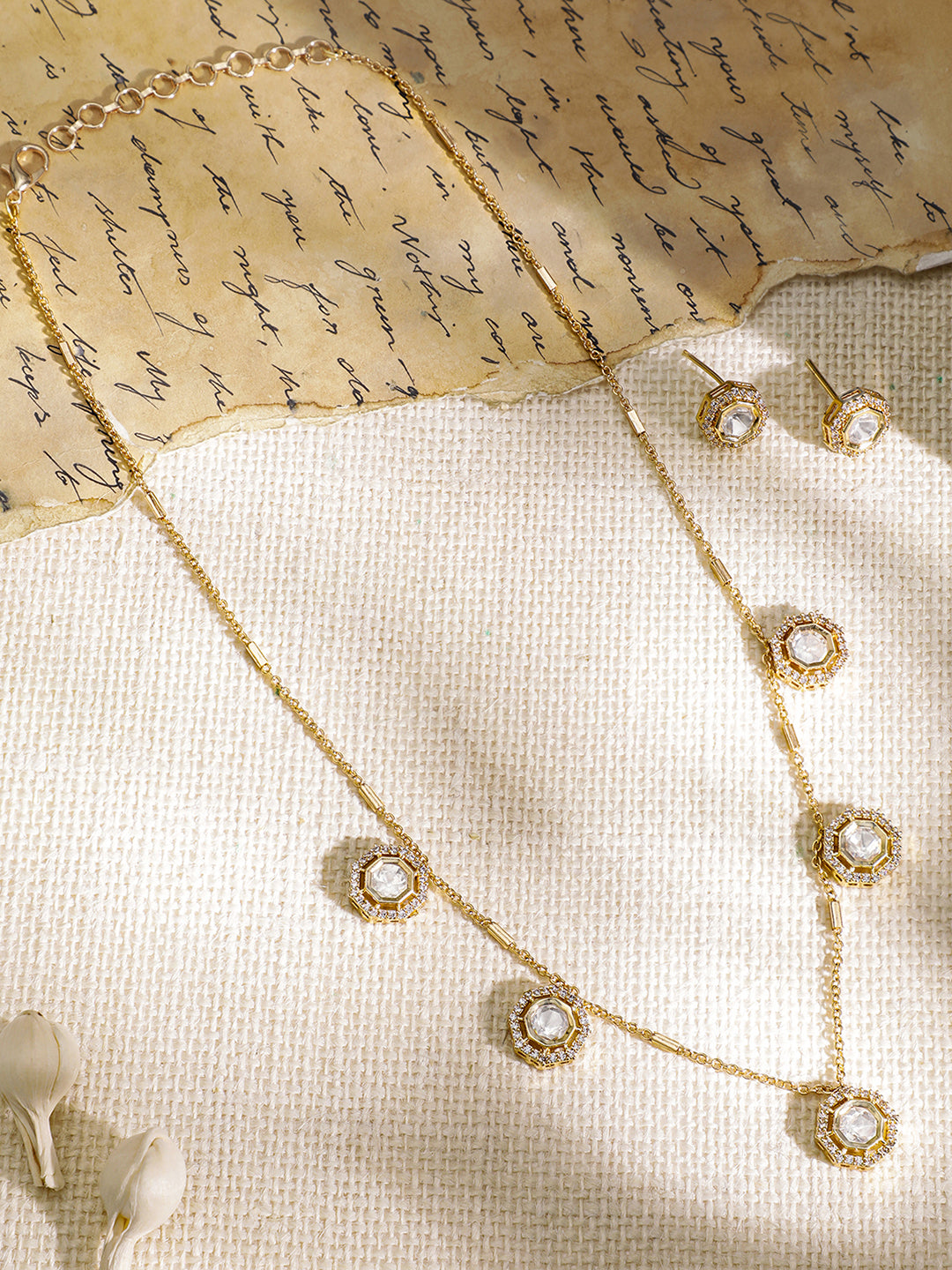 Rubans Gold-Plated Crystal Stone Studded Jewellery Set Necklace set