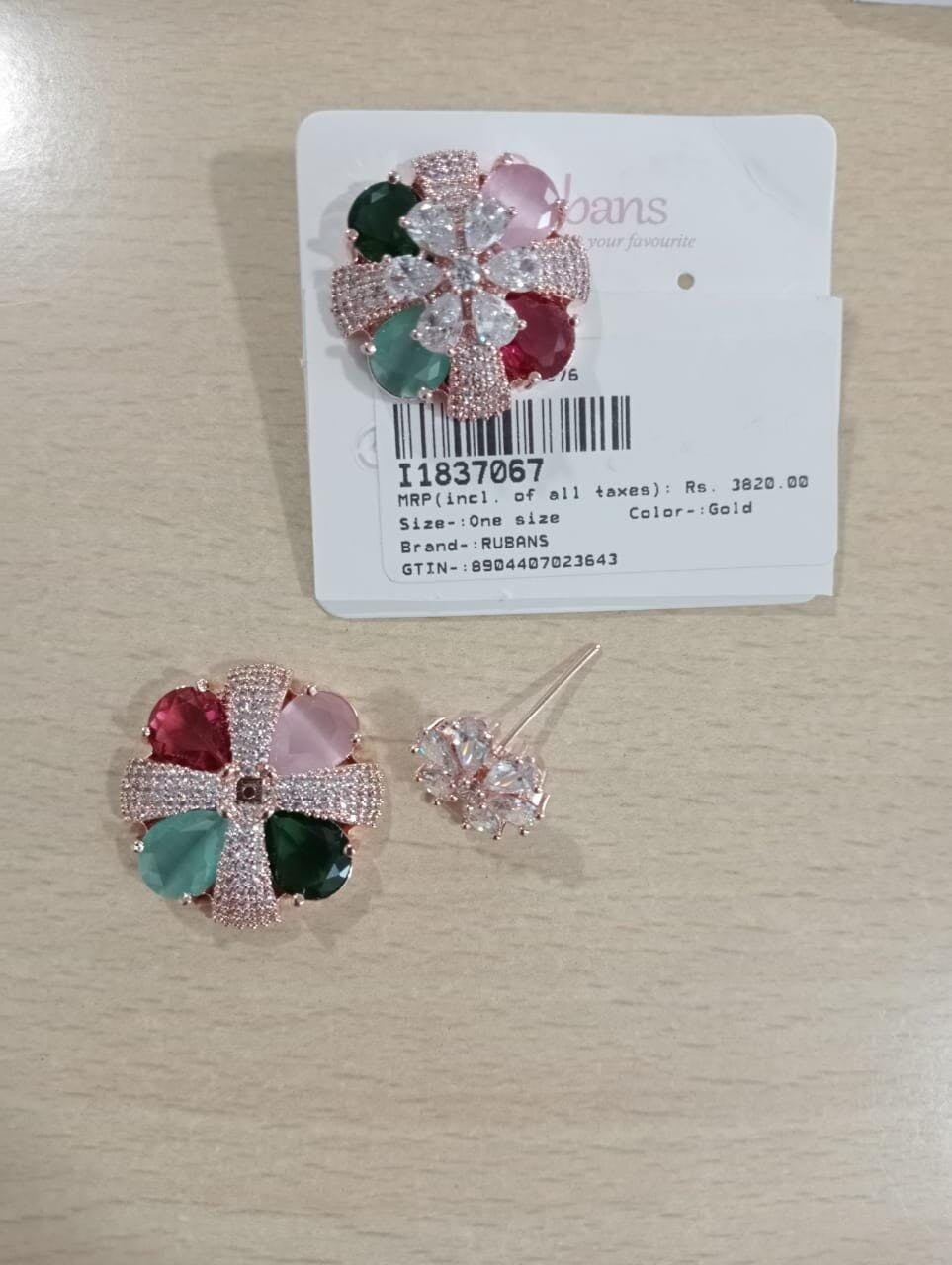Rubans Rose Gold-Plated Multicolor AD Stud Earrings.