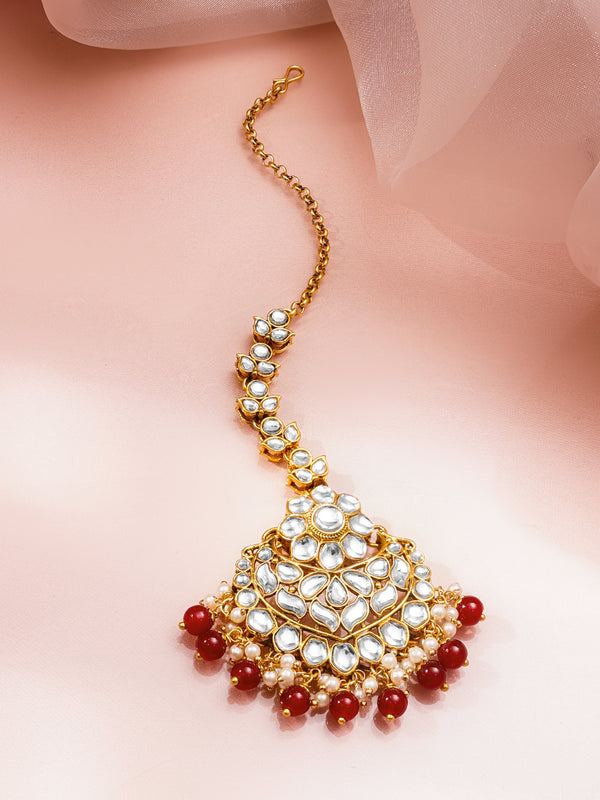 Red Edges Kundan Maang Tikka