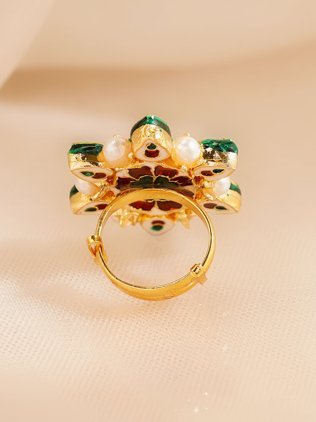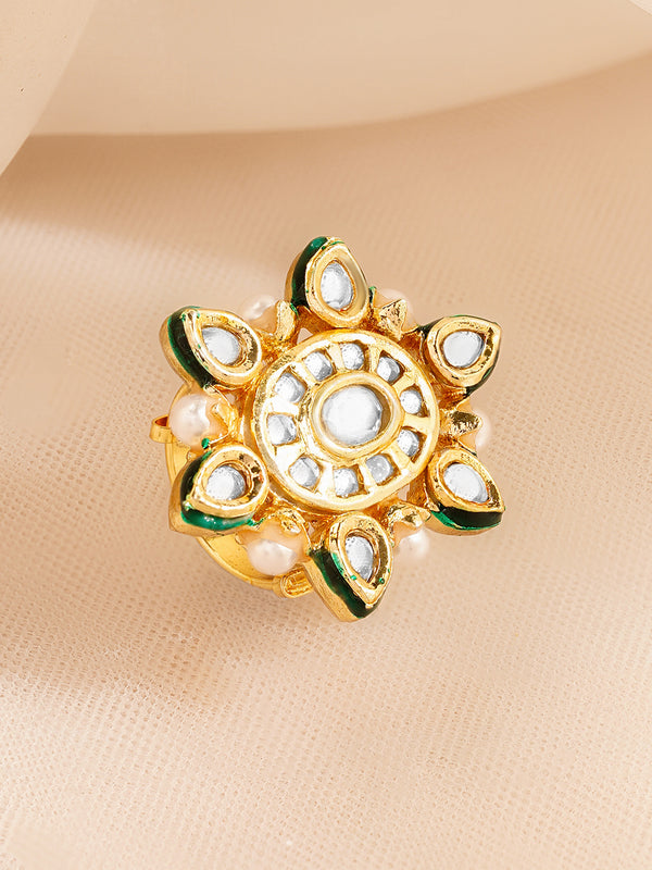 Rubans Adjustable Ring Gold-Plated Brass with Kundan Stones & Pearl Detailing Traditional Festive & Wedding Jewellery for Women & Girls