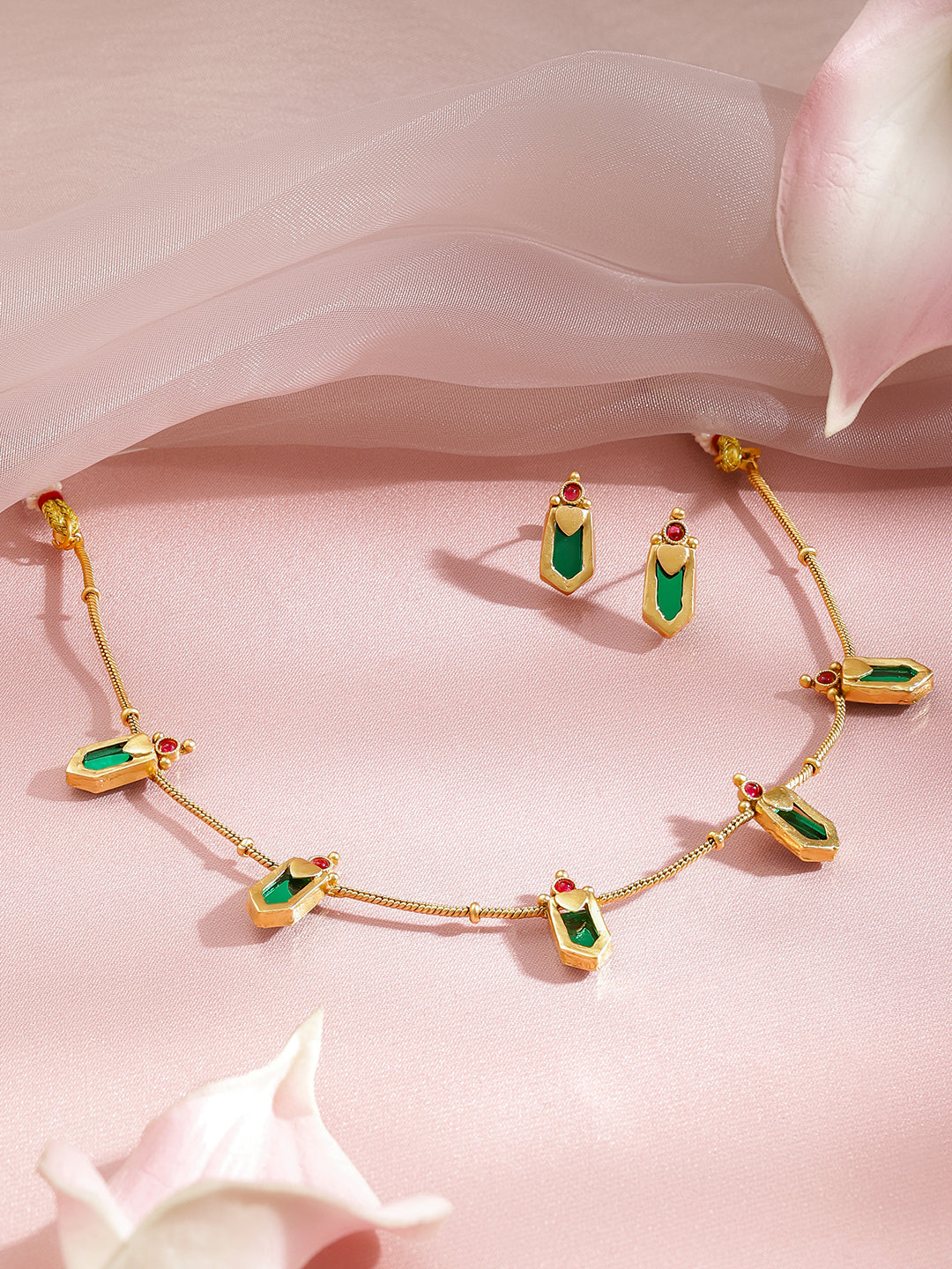 Minimal Greens-Pink Golden Necklace Set