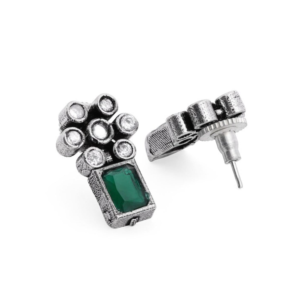 Rubans Oxidised Silver Plated Handcrafted Green Stone Floral Necklace Set