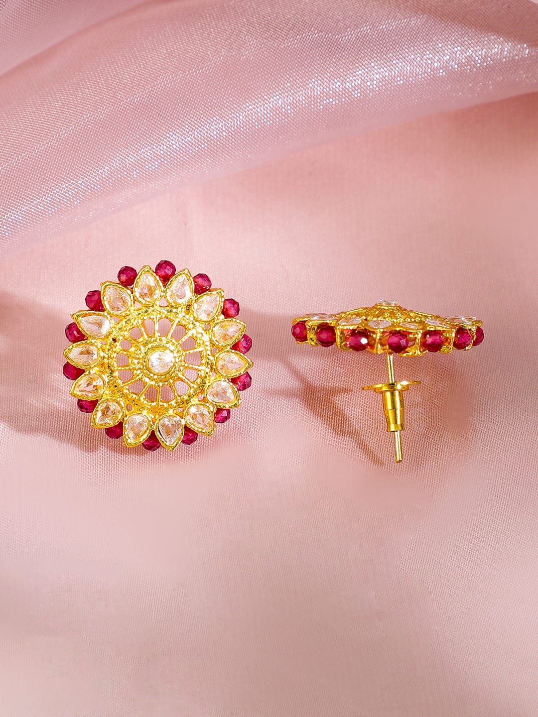 Adorn your neckline with this exquisite Rubans 22K Gold-Plated Multi-Strand Choker Jewellery Set, featuring ruby pink beads and dazzling cubic zirconia stones. Perfectly designed for traditional elegance.