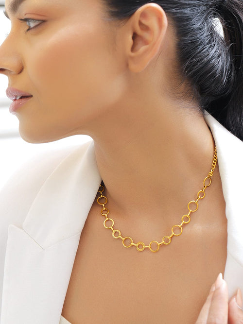 Necklace and Chains : Rubans 18K Gold-Plated Stainless Steel Circle-Link Necklace with a chic modern chain design. Tarnish-free and waterproof, perfect for daily styling, office chic, or party layering looks.