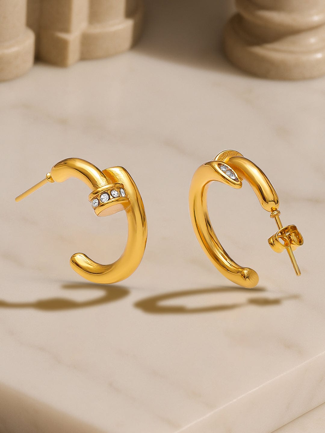 Earrings : Rubans Voguish  18K gold-plated stainless steel tarnish-free waterproof open hoop earrings with sparkling Cubic Zirconia accents, perfect for daily wear, office, parties, and special occasions.