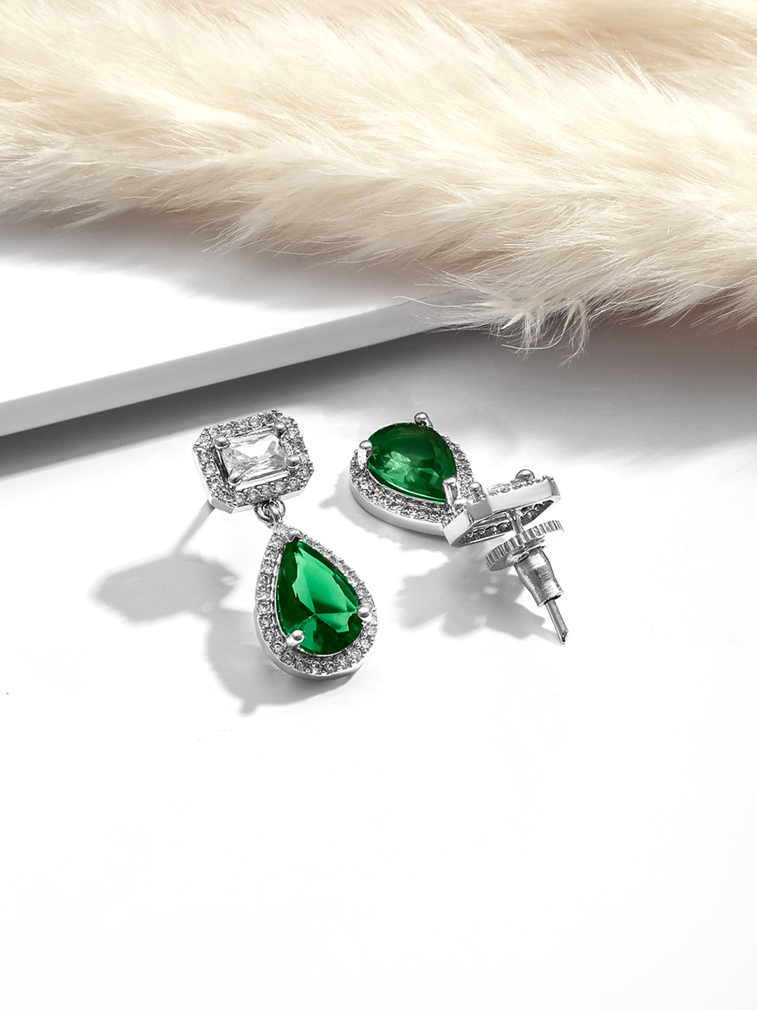 Earrings : Discover the elegance of Rubans Rhodium Plated Crystal Emerald & Cubic Zirconia Studded Drop Earrings. This piece combines quality craftsmanship with a timeless design, making it perfect for any occasion. Elevate your style effortlessly and enjoy compliments on your refined taste. A must-have addition to your jewelry collection.