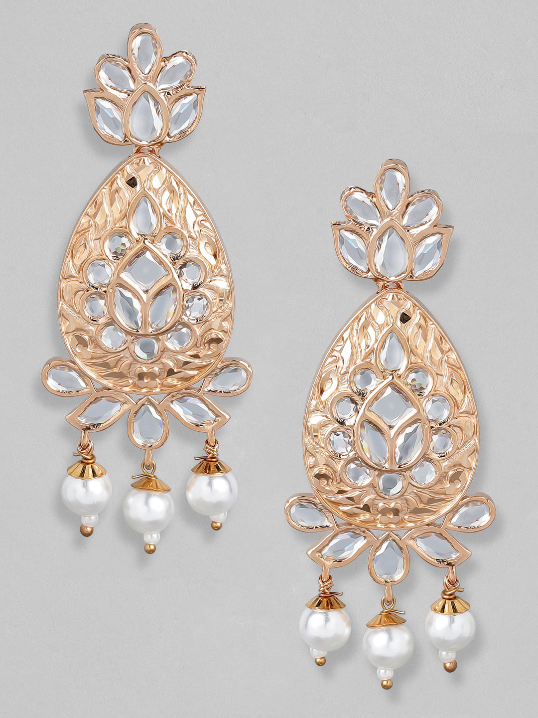 Rubans Rose Gold-Plated & White Teardrop Shaped Drop Earrings