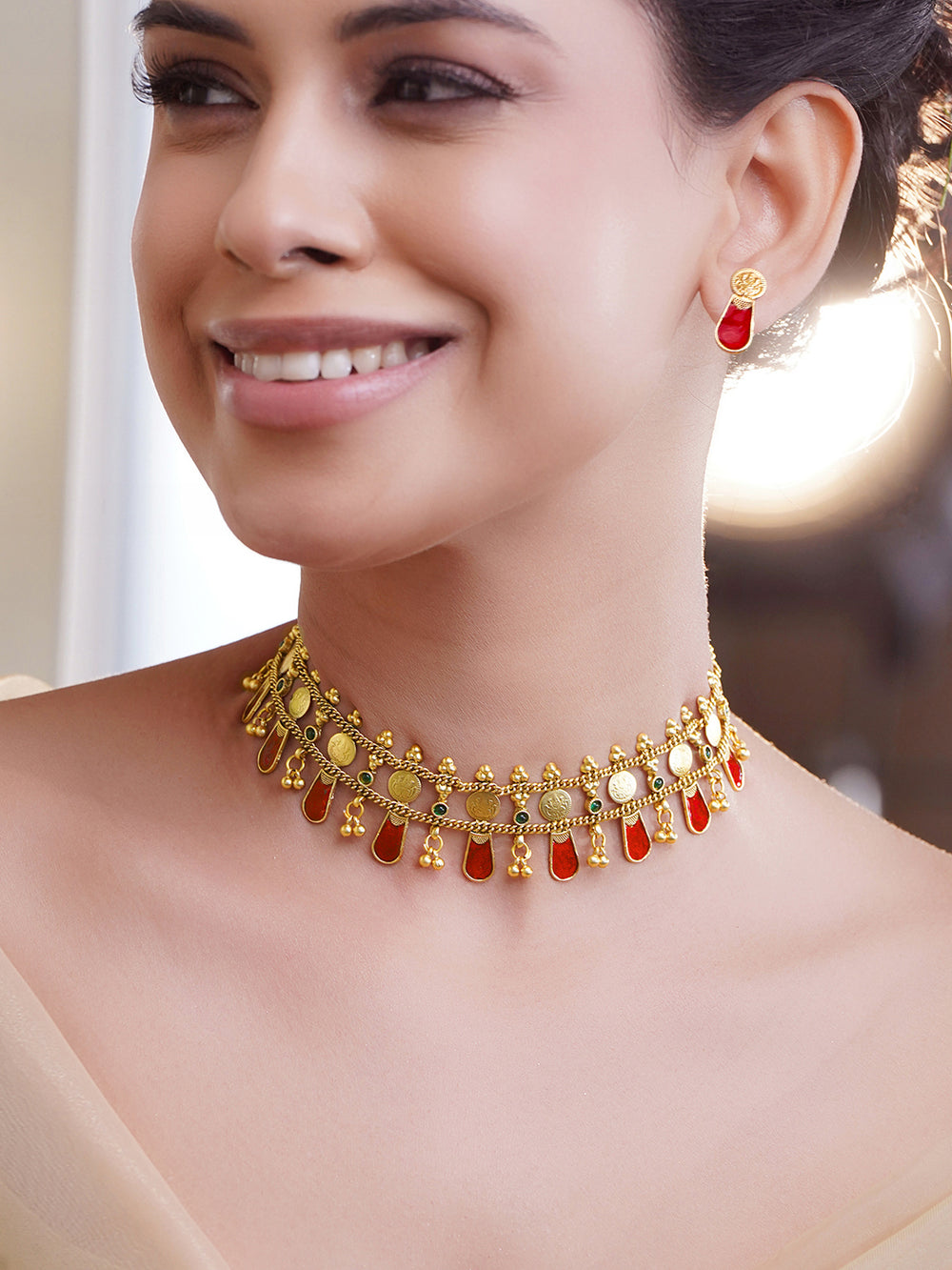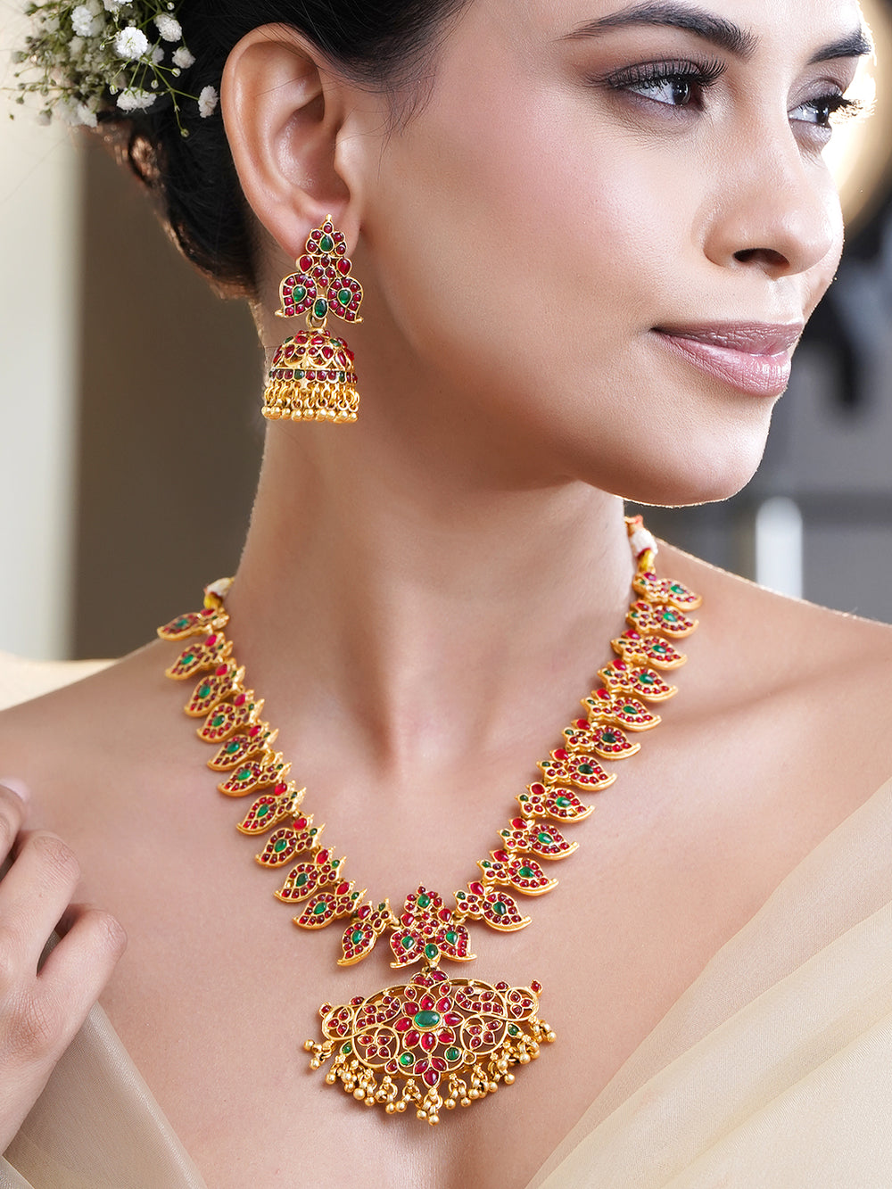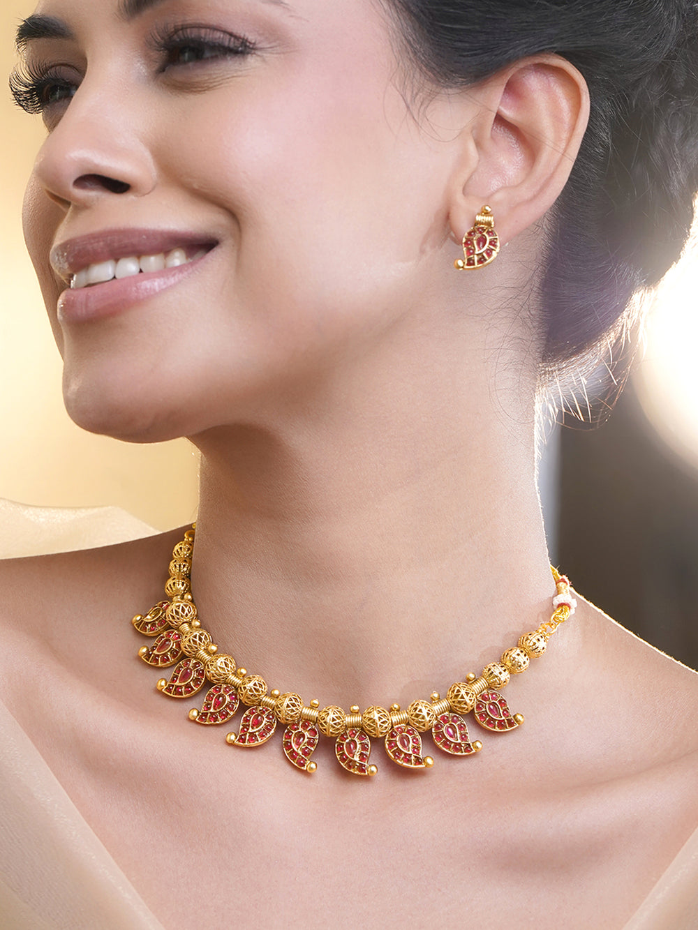 Temple jewellery earrings – While you may get the best of traditional earrings at Rubans, here is the traditional trove of gold-plated temple earrings.