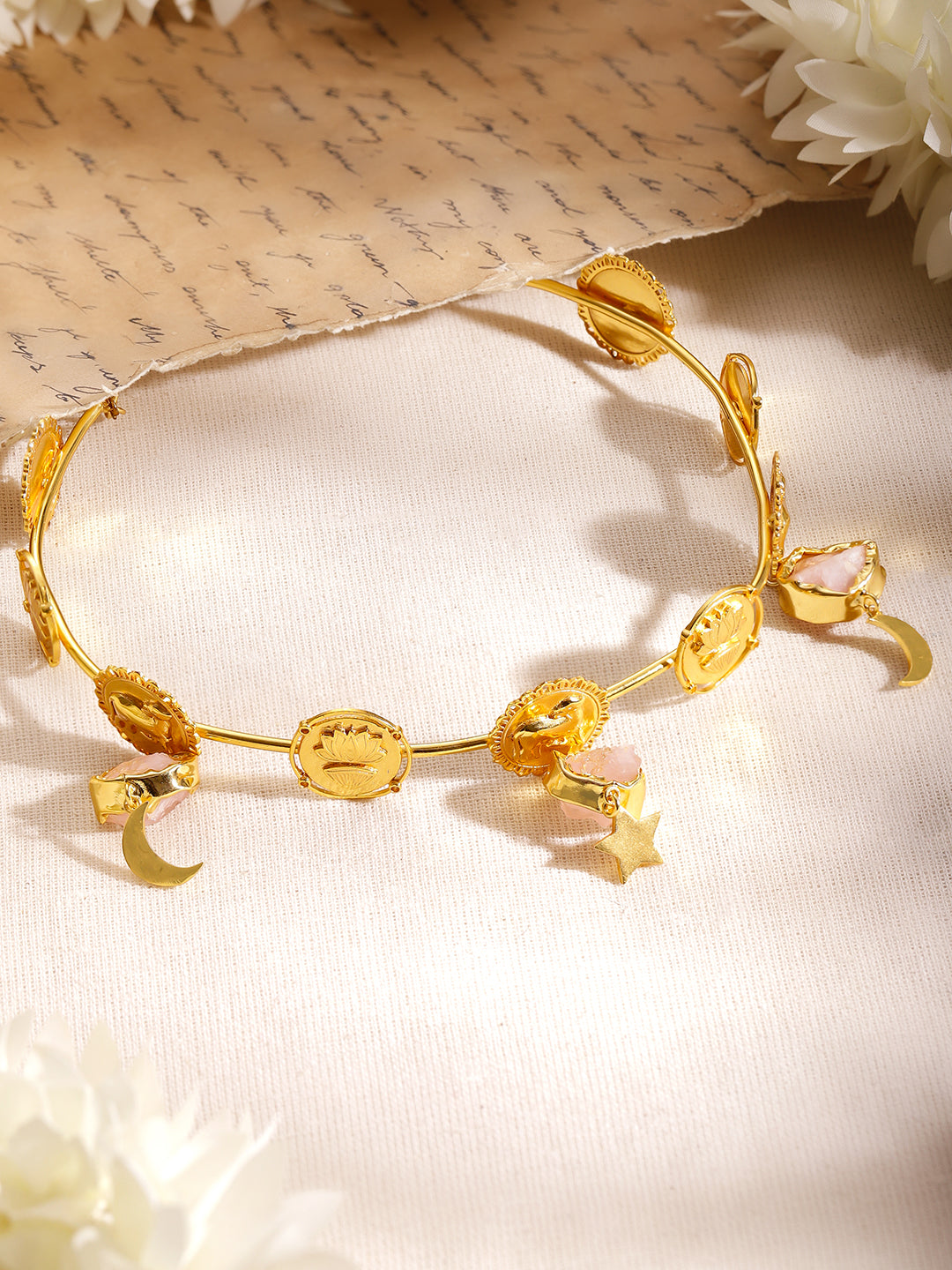 Rubans Antique Statement Choker Necklace 18K Gold Plated with Pink Gemstone Charms & Celestial Motifs Stylish Daily & Partywear Jewellery for Women & Girls
