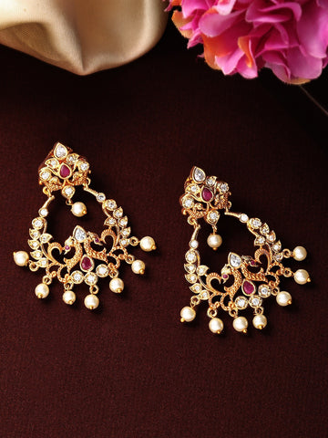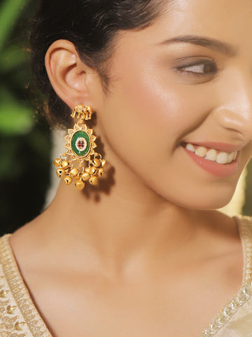 Temple jewellery earrings – While you may get the best of traditional earrings at Rubans, here is the traditional trove of gold-plated temple earrings.