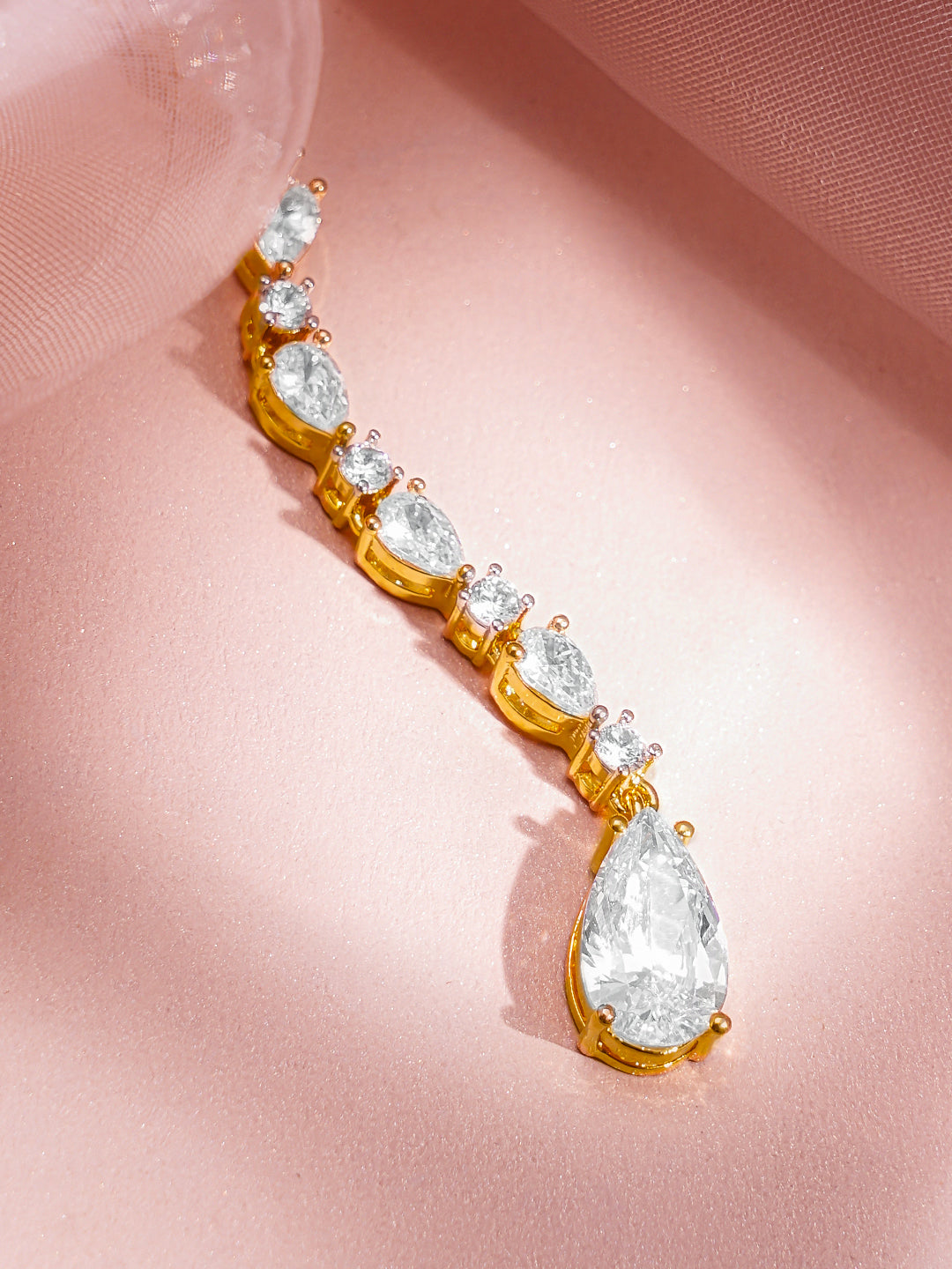 - • American Diamond studded drop design with fine setting inspired by classic bridal craftsmanship