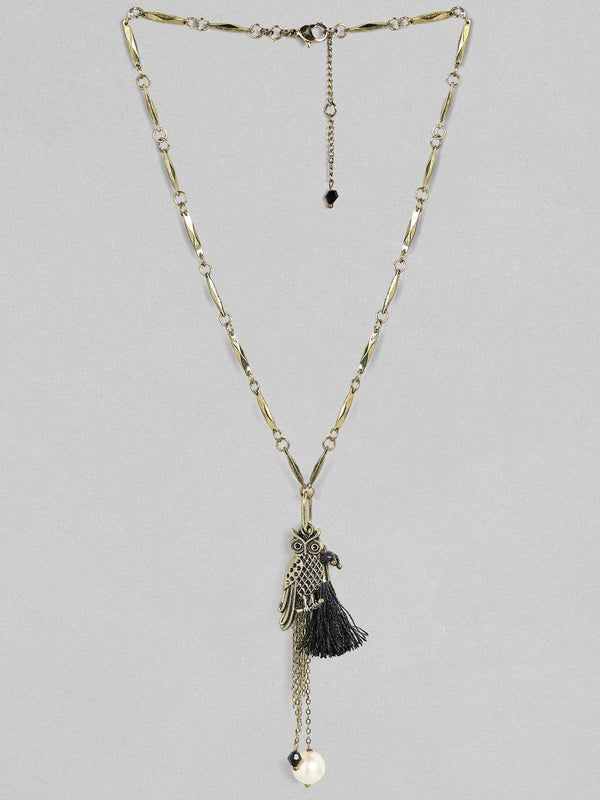 Rubans Antique Gold Plated Chain Tassel Pendant Boho Necklace