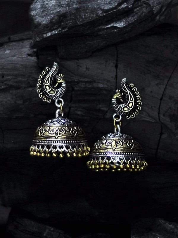 Rubans Oxidized Dual Tone Peacock Stud Metal Jhumki Earring Earrings
