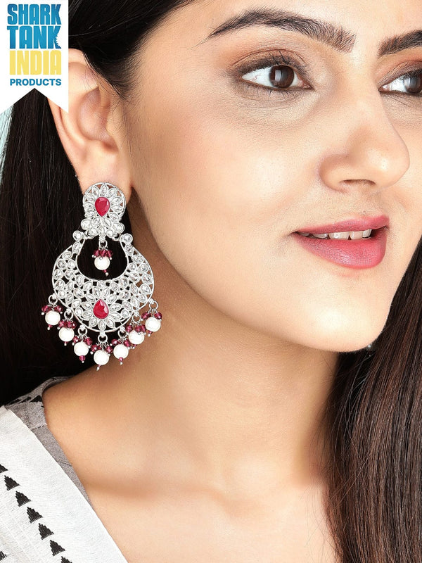 Rubans Silver Plated Maroon Red Beads Elegant Earrings