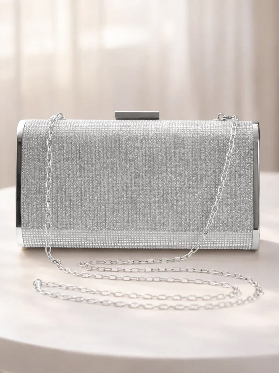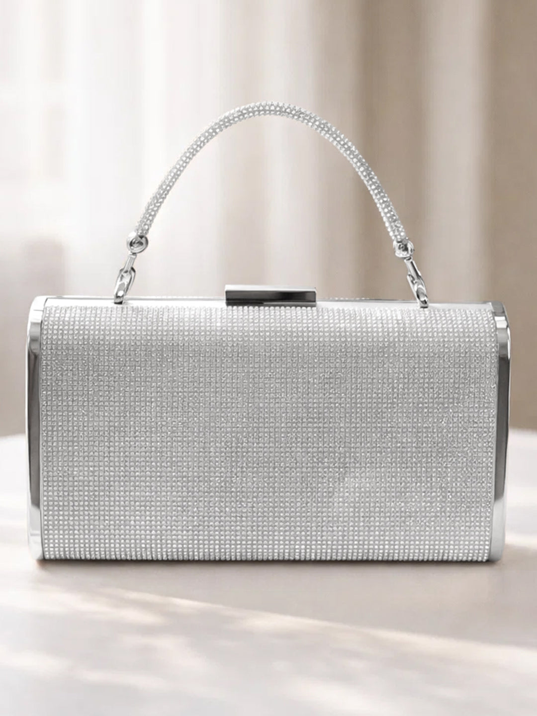 - Crystal Embellished Surface: Full rhinestone detailing adds elegant shimmer and evening glamour.