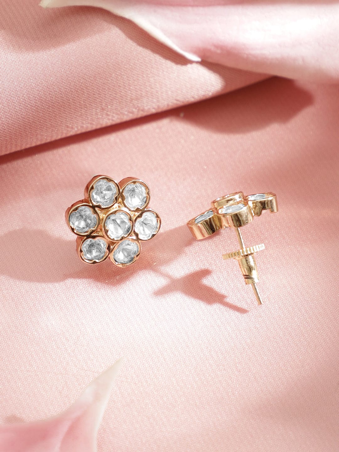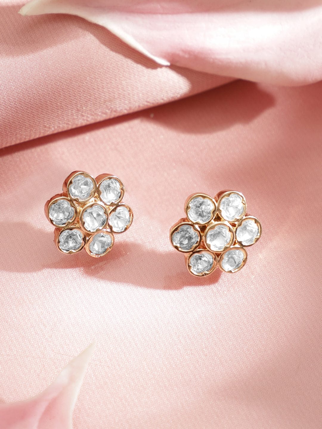 Jewellery Set: An opulent 22K gold-plated choker necklace set by Rubans, studded with white Kundan and Cubic Zirconia, paired with elegant earrings for a luxurious touch to weddings, parties, and festive celebrations.
