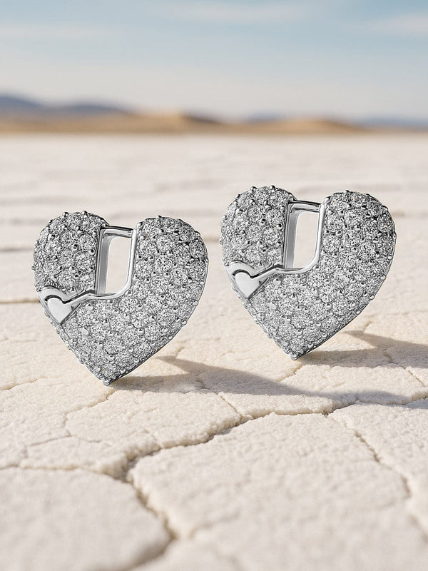 Earrings : Elevate your accessory game with these rhodium-plated heart-shaped hoop earrings. Embellished with sparkling cubic zirconia, these earrings exude sophistication and timeless charm.