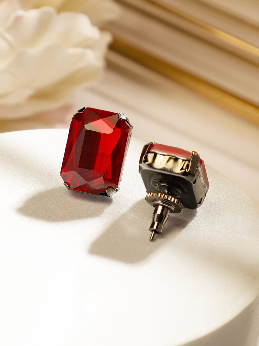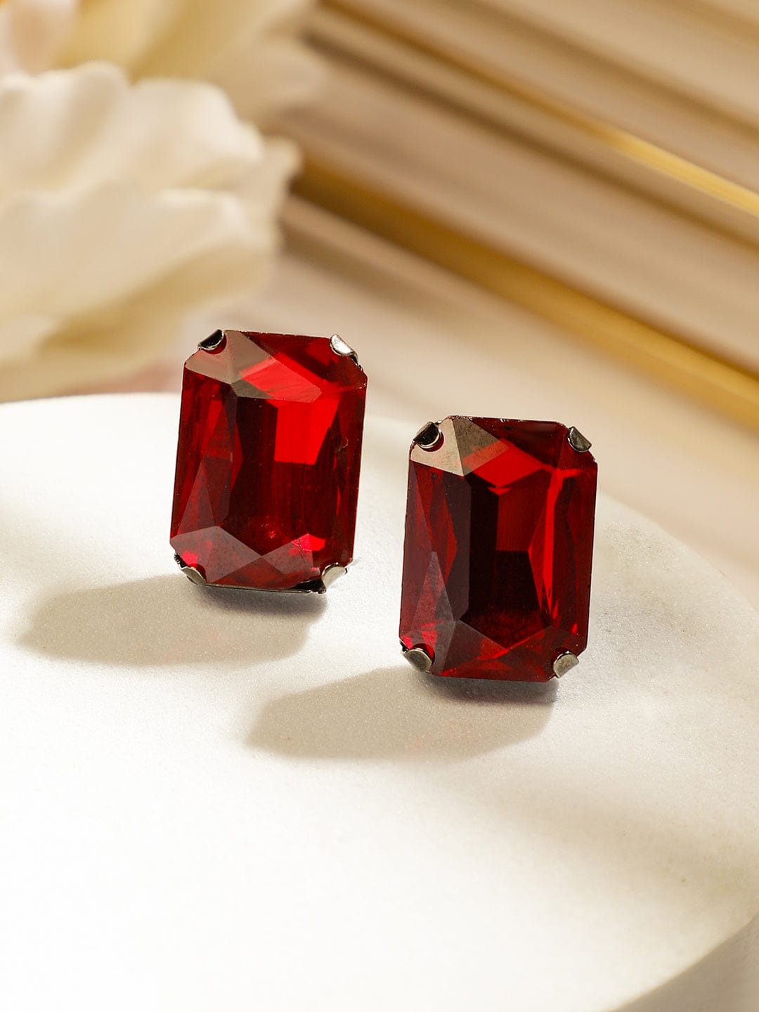 Jewellery Set : This rhodium-plated statement choker set features deep maroon crystal cubic zirconia stones, set in a modern and elegant design. The matching stud earrings complete the luxurious and stylish look