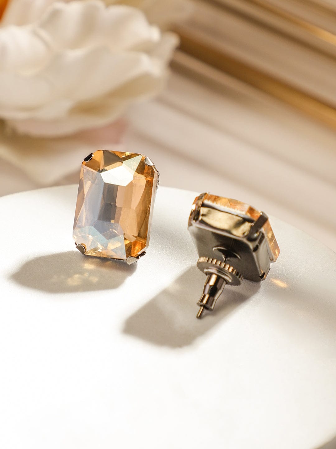 Make a bold statement with this rhodium-plated choker jewelry set, adorned with yellow crystal cubic zirconia stones in a stunning emerald-cut design. The matching stud earrings enhance its luxurious charm, making it ideal for parties, evening events, and high-fashion occasions.