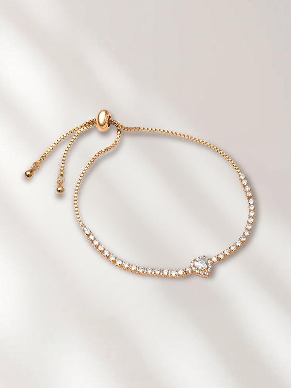 Adjustable Gold Plated Heart American Diamond Zirconia Bracelet