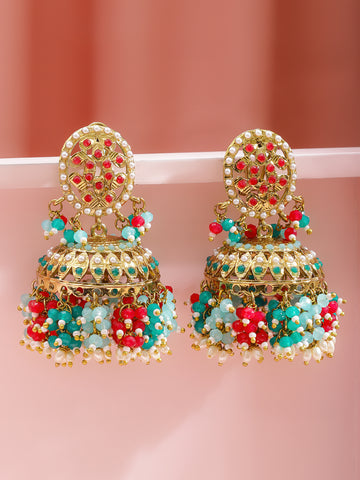 Explore collection of gold plated Jhumka earrings at Rubans Accessories. Elevate your style with these timeless pieces, perfect for adding an elegant touch.