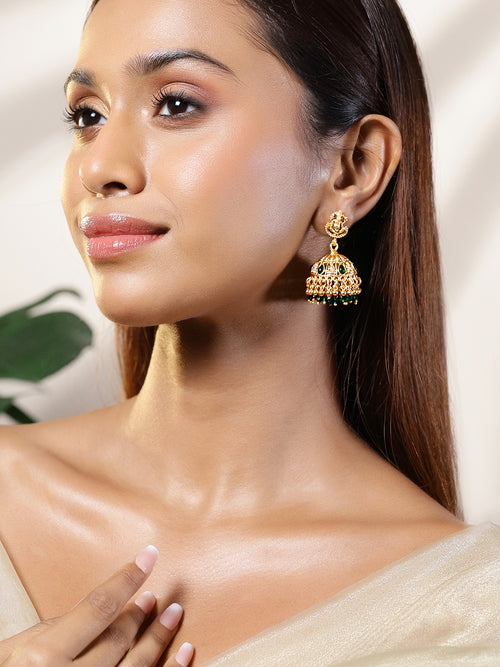 Share on WhatsappTemple Glow Lord Ganesha Motif Green Jhumka