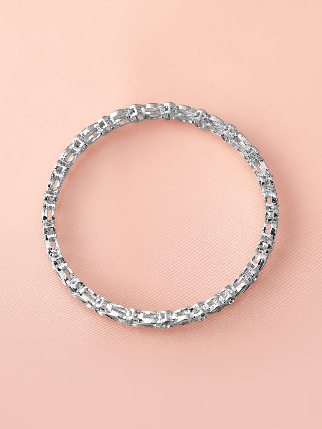 Bangle : Discover the elegance of Rubans Set of 4 Rhodium-Plated Silver-Tone Kundan & Cubic Zirconia Studded Premium Bangles. This piece combines quality craftsmanship with a timeless design, making it perfect for any occasion. Elevate your style effortlessly and enjoy compliments on your refined taste. A must-have addition to your jewelry collection.