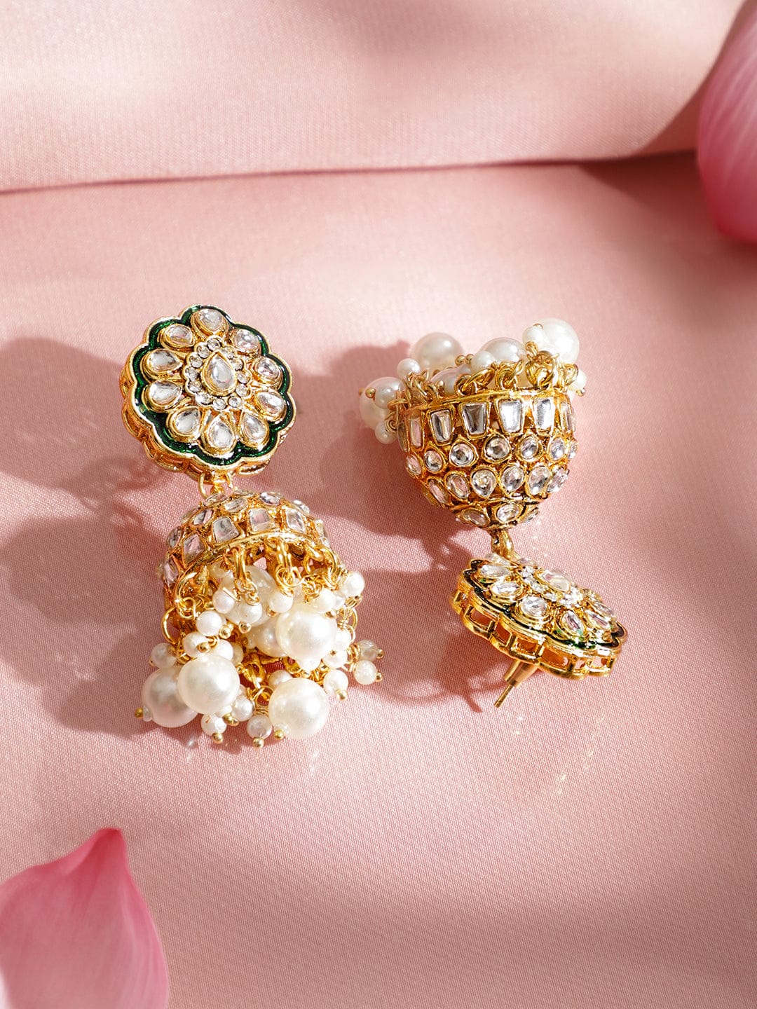 Jewellery Set: A regal choker set by Rubans, crafted in 22K gold-plating with dazzling white Kundan, Cubic Zirconia and glossy white pearl beads, paired with matching jhumkas—perfect for weddings, festive & bridal looks.
