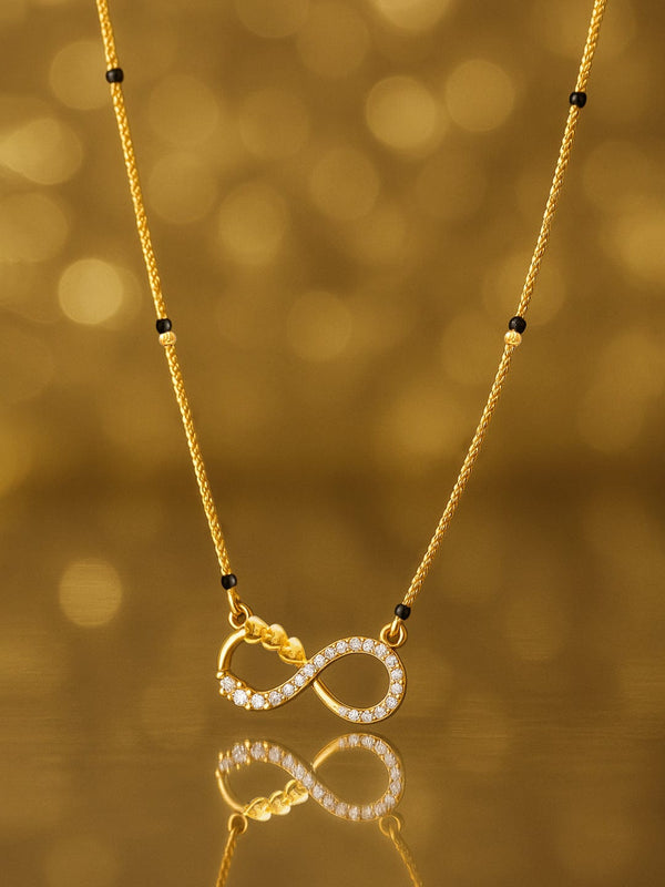 Mangalsutra Set : Rubans 18K Gold-Plated Brass mangalsutra with an infinity motif and sparkling cubic zirconia stones. A modern yet traditional piece, perfect for daily wear and special occasions.