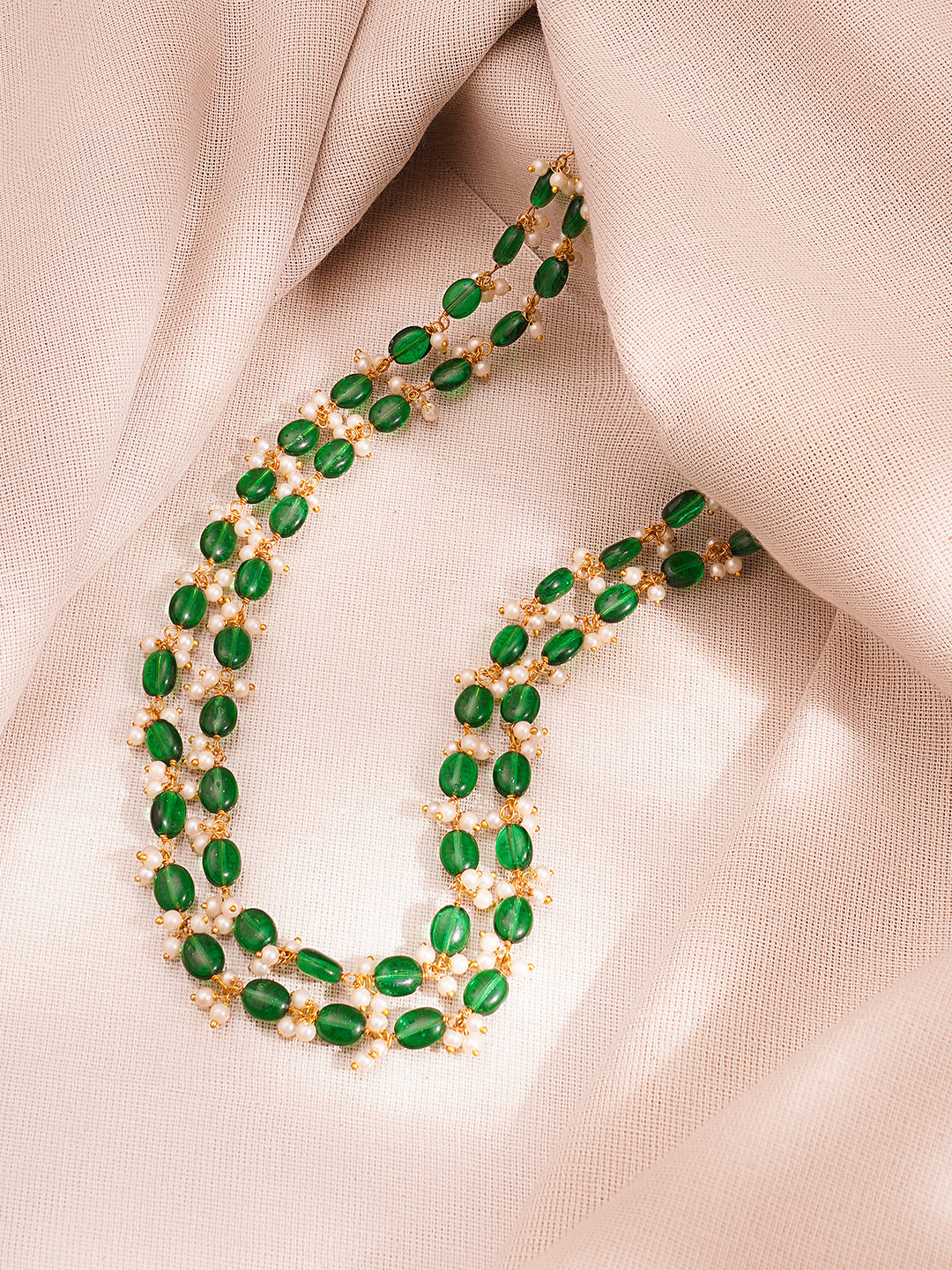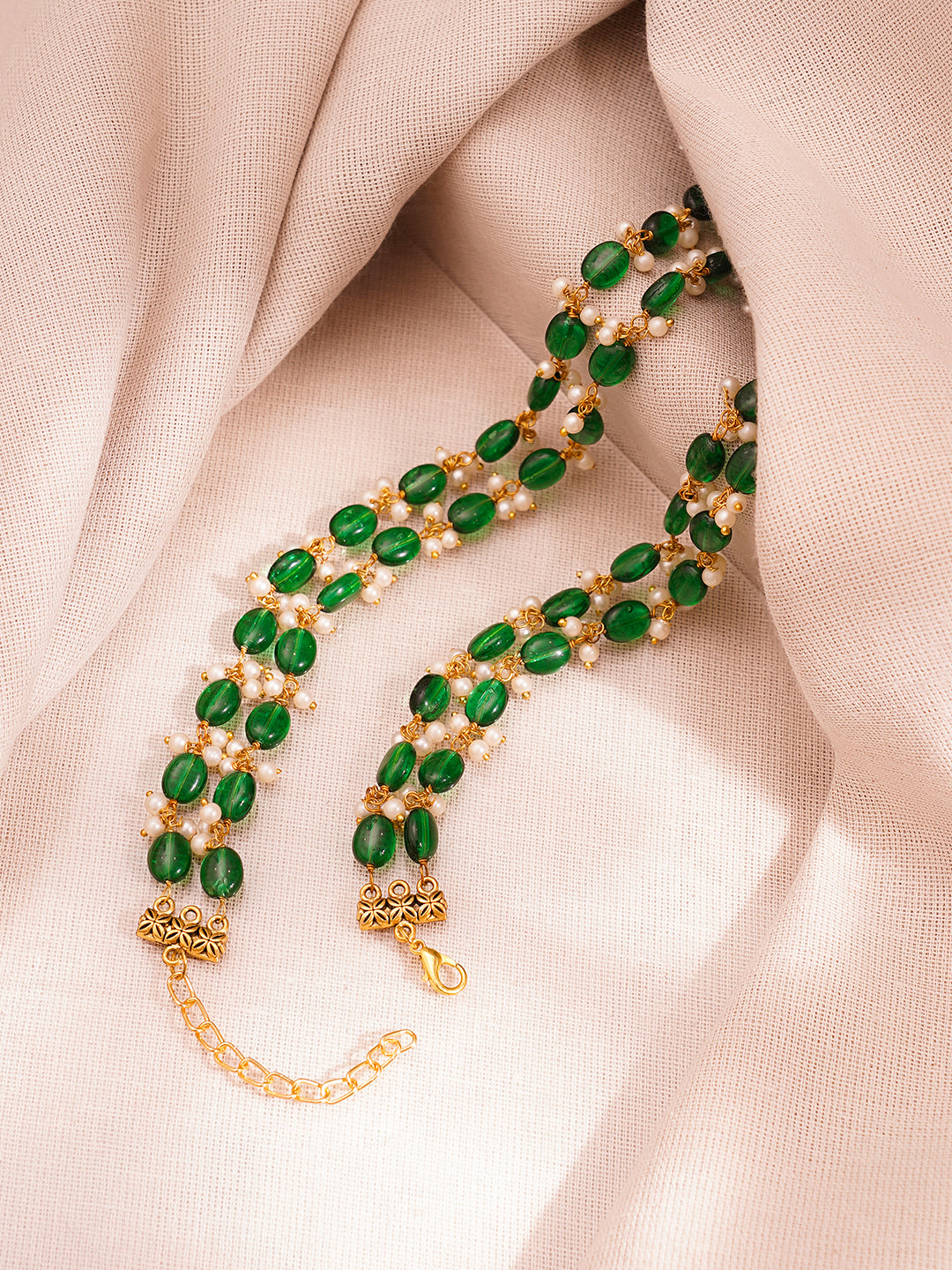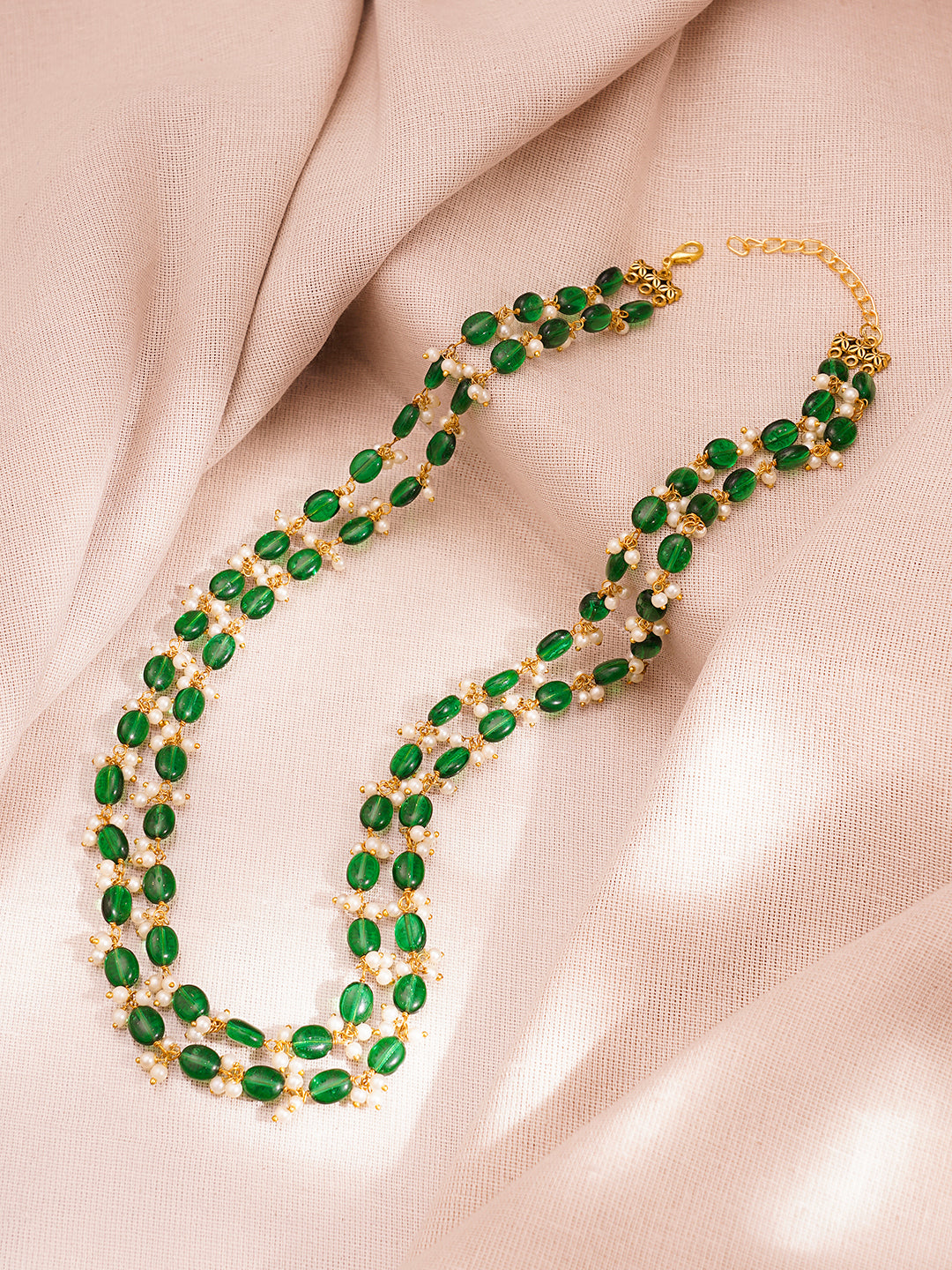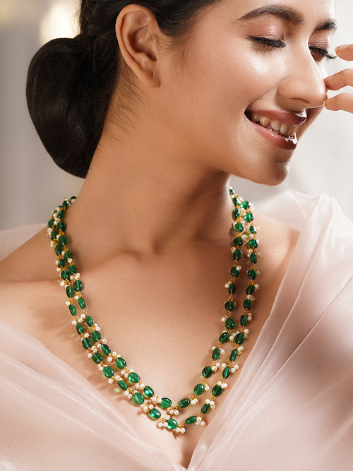 Share on WhatsappGold Plated Brass Green Beaded Pearl Double Layer Necklace