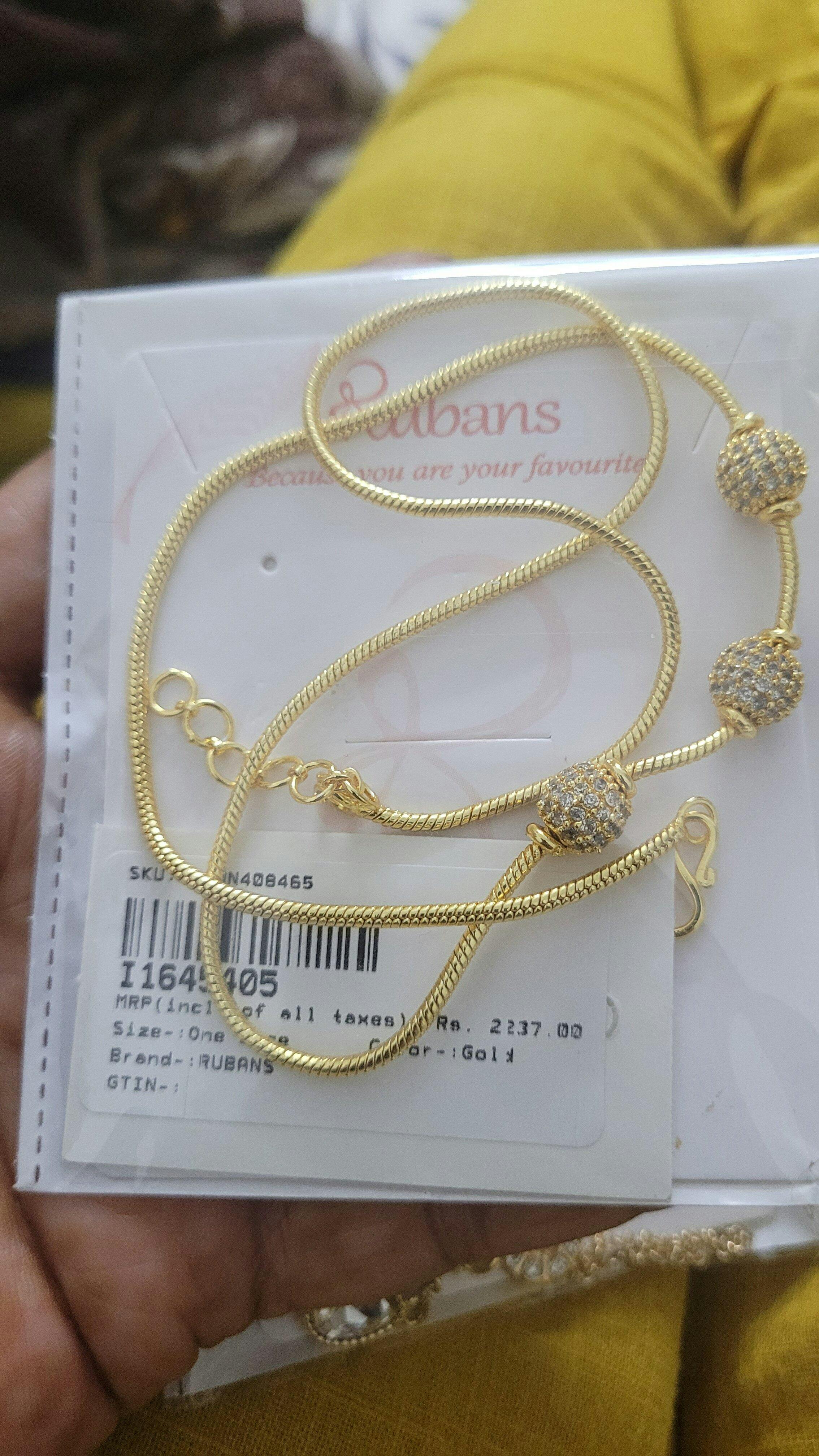 Chain & Necklace : This 22K gold-plated necklace features a sleek chain with three cubic zirconia-encrusted beads, creating an elegant and minimalistic look. The delicate design makes it a versatile piece, perfect for layering or wearing as a statement on its own.