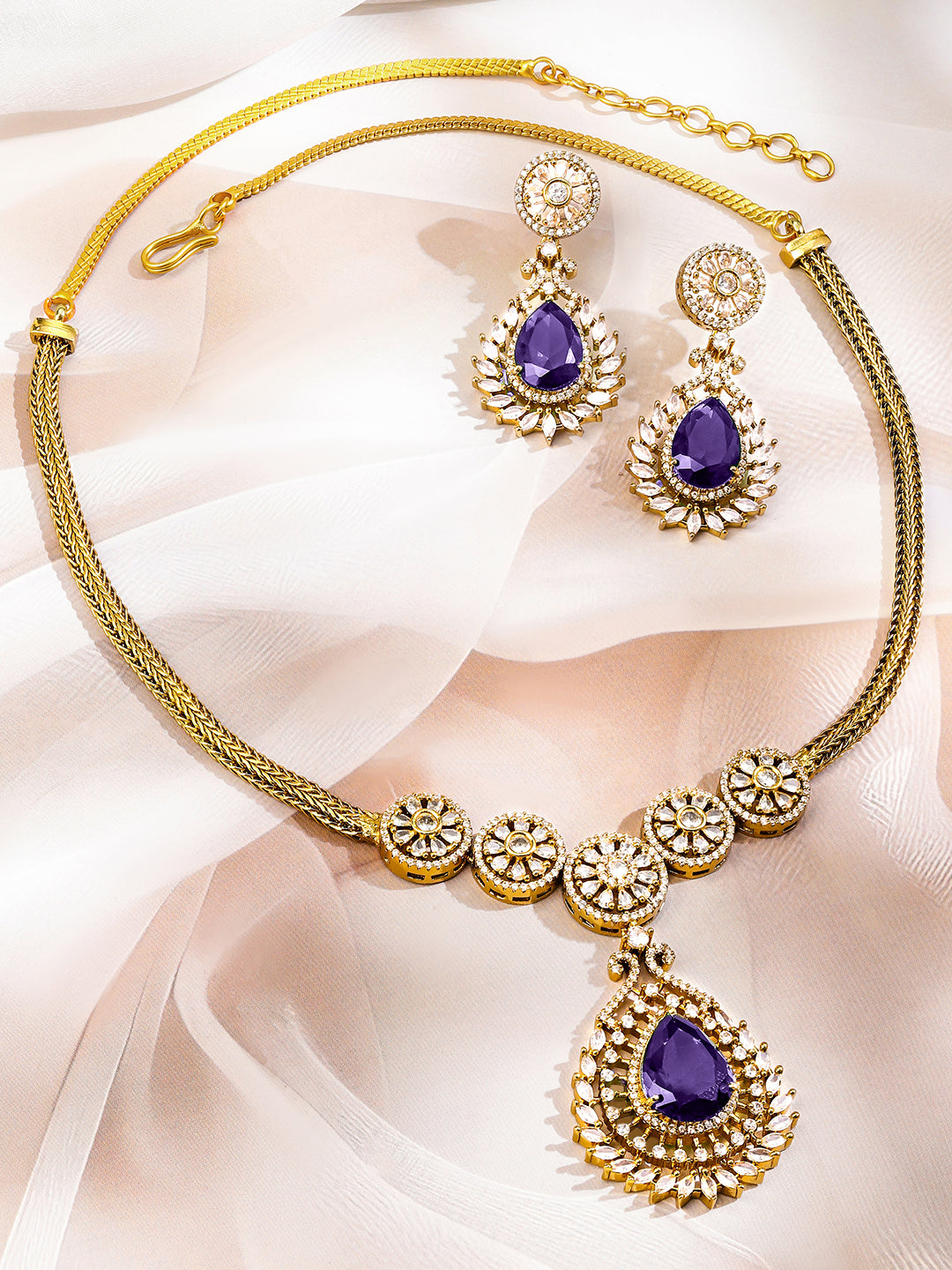 Share on WhatsappPurple American Diamond Zirconia Gold Necklace Set