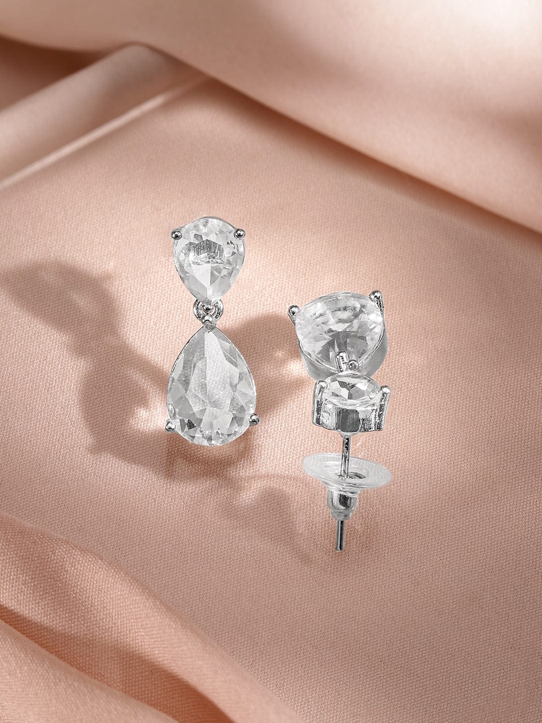 Jewellery Set : This rhodium-plated statement necklace set features dazzling white cubic zirconia stones in a pear-cut design, paired with matching earrings for a luxurious touch.