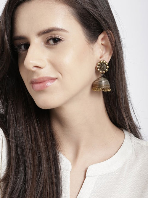 Rubans Oxidised Silver & Antique Gold-Toned Dome-Shaped Jhumkas