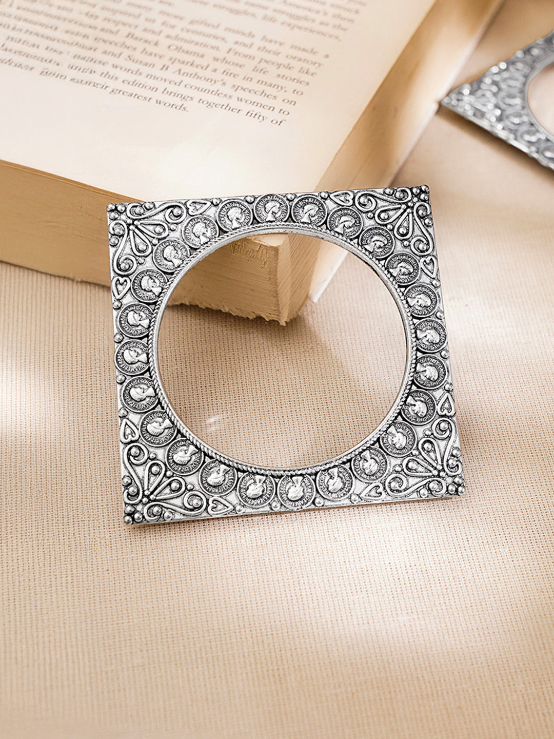 Share on WhatsappOxidised Engraved Square Carved Statement Bangles